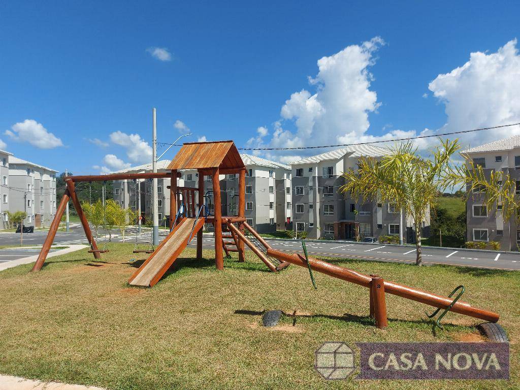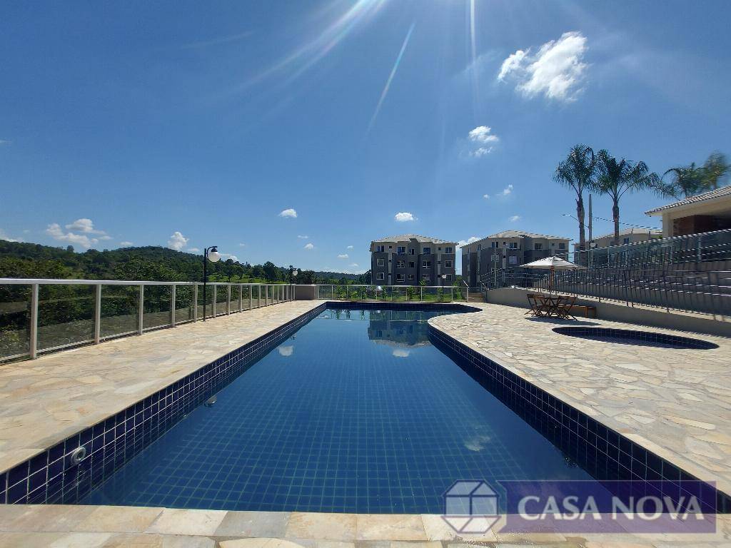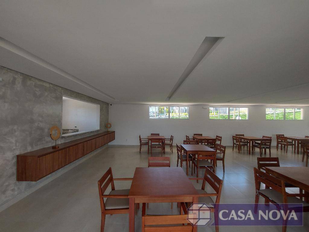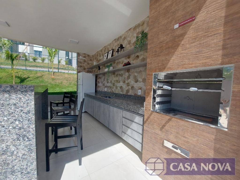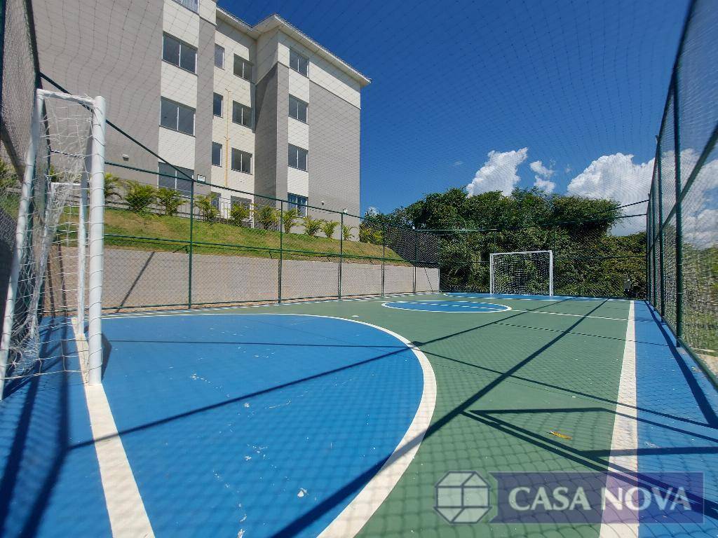 Um apartamento residencial com cerca de 50 m², com 02 dormitórios, sala, cozinha, banho social, área de serviço, interfone, portaria 24 h, área de lazer com salão de festa, área gourmet, play ground, piscina e quadra esportiva.